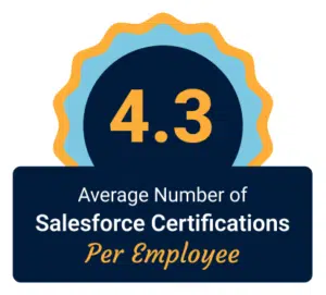 Over the past 12 months, the team has continued to place a major emphasis on growing our skillset and certs. As Salesforce announced new certifications (like AI Associate and Data Cloud Consultant) our team was quick to snap up these accolades, and we now have an impressive 4.3 Certs per Employee (and that’s across all employees, including HR/Finance/non-Salesforce positions), supporting our status as industry leaders.
