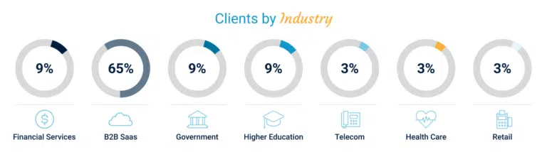 With our expertise in industry with high regulatory/high compliance requirements, we saw a fairly even distribution across Public Sector/Government, Financial Services and Health Care clients. Our SaaS clients are always near and dear to our heart, and continue to represent a solid chunk of our client base, as one of our main fortés is helping organizations scale.